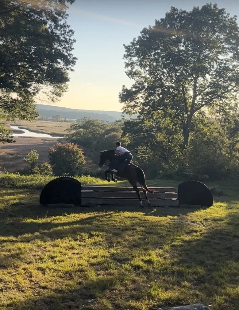 While Kona once was entirely shut down, she is now a pleasure riding horse (except when faced with puddles). She has been too traumatized in the showjumping ring to compete at rated shows. She loves to go out on bridle paths and jump in fields. If she could show, her strength would be her speed. She is a classic good mare.